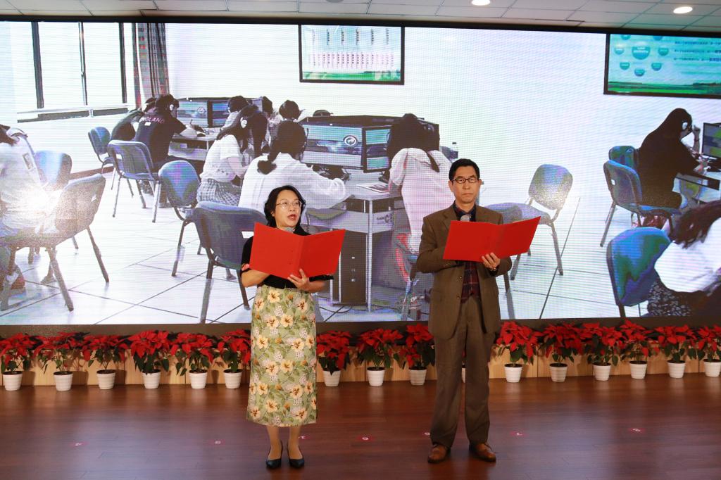 董永茂和王晓玲老师现场表演了诗朗诵《日出东方,其道大光》。